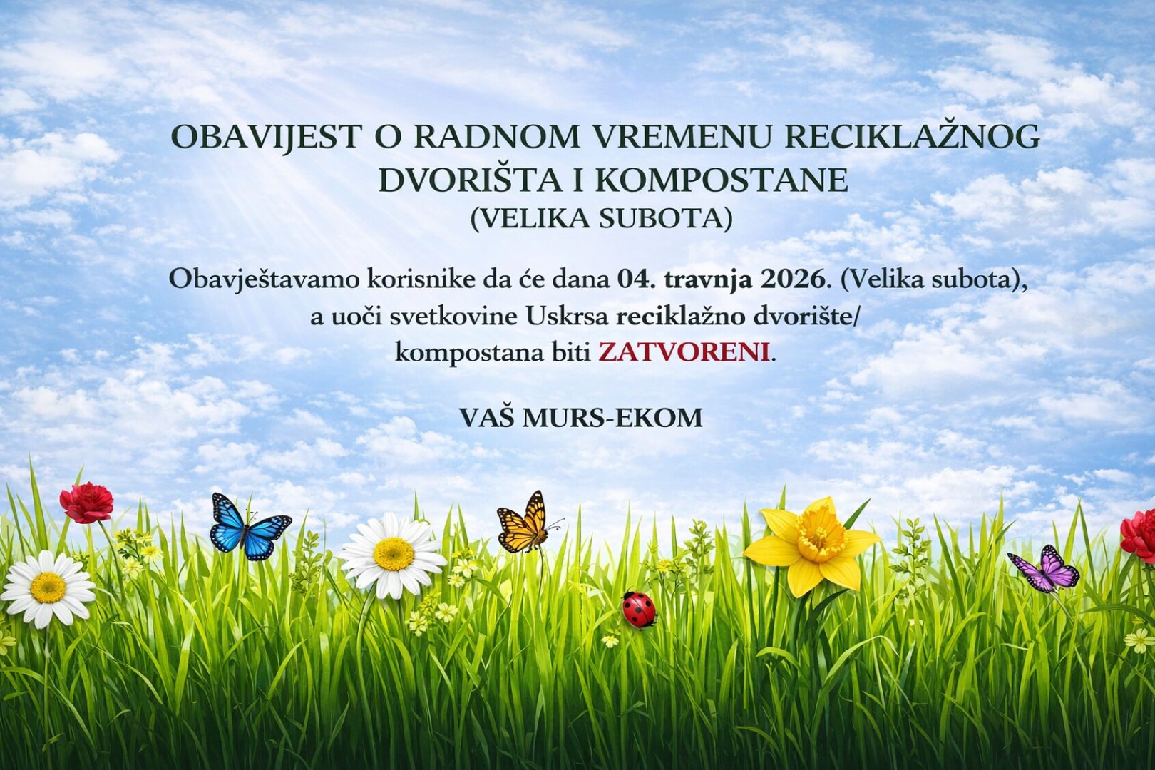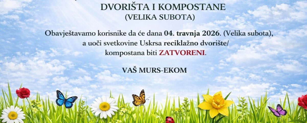 OBAVIJEST O RADNOM VREMENU RECIKLAŽNOG DVORIŠTA I KOMPOSTANE (VELIKA SUBOTA)